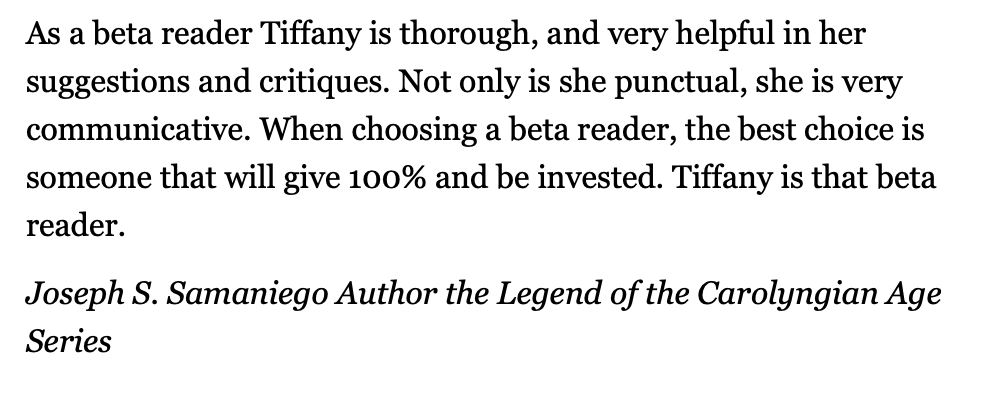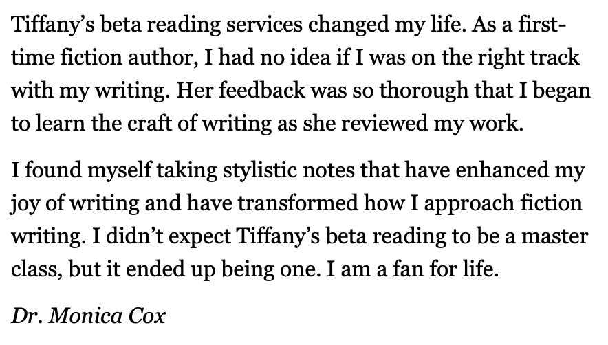 - Aside from that, she’s a friend to the writing community! And sometimes you just need a friend to hear you out and help you assess your options. Tiffany can be that friend for you!